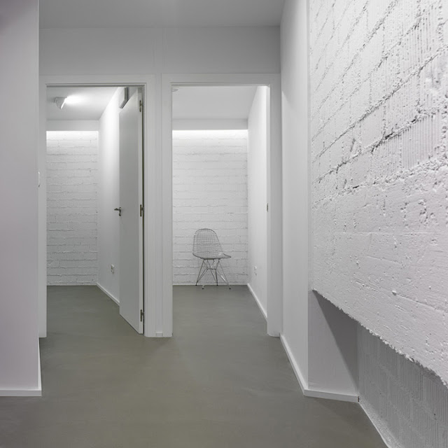 Descubierto vía Pinterest, os aseguro que no me imaginaba en absoluto que este espacio se tratara de una parafarmacia. Pero así es, y además lo que no imaginaba tampoco es que estuviese aquí al lado. Pues bien, el reto principal de indigo arquitectura, autores del proyecto, era crear un espacio con identidad propia alejado del estereotipo asociado a este tipo de negocios, y en mi opinión lo han conseguido. Me gusta la mezcla de materiales y texturas y el uso de los mismos, asociando cada material a una función determinada. Y el elemento a destacar de su interior son sus estanterías de hierro y madera, ancladas a suelo y pared, que tanto me gustan.